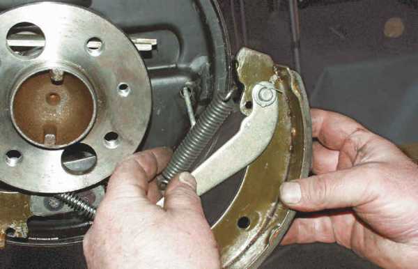 - С колодки, находящейся сзади, демонтируем сам рычаг ручника. Установка колодок и сборка механизма тормозов своими руками выполняется в обратном порядке.