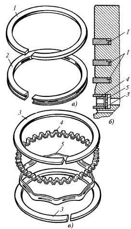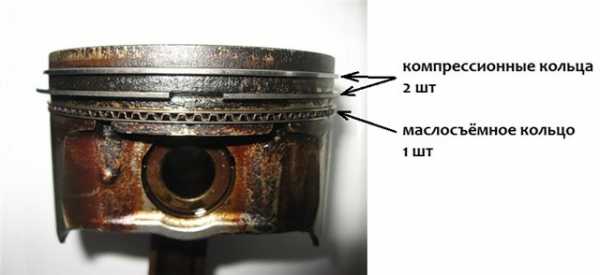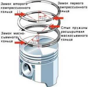 ΠΠ±ΡΡΠ½ΠΎ Π² ΠΏΠΎΡΡΠ΅Π½Ρ Π²ΡΡΠ°Π²Π»ΡΡΡΡΡ 3 ΠΊΠΎΠ»ΡΡΠ°: 2 ΠΊΠΎΠΌΠΏΡΠ΅ΡΡΠΈΠΎΠ½Π½ΡΡ (Π·Π°Π½ΠΈΠΌΠ°ΡΡ 2 Π²Π΅ΡΡ Π½ΠΈΡ ΠΊΠ°Π½Π°Π²ΠΊΠΈ) ΠΈ 1 ΠΌΠ°ΡΠ»ΠΎΡΡΠ΅ΠΌΠ½ΠΎΠ΅ (Π½ΠΈΠΆΠ½ΡΡ ΠΊΠ°Π½Π°Π²ΠΊΠ°). ΠΠ°Π΄Π°ΡΠ° ΠΊΠΎΠΌΠΏΡΠ΅ΡΡΠΈΠΎΠ½Π½ΡΡ ΠΊΠΎΠ»Π΅Ρ β Π½Π΅ Π΄ΠΎΠΏΡΡΡΠΈΡΡ ΠΏΡΠΎΡΡΠ²Π° ΡΠ°ΡΠΊΠ°Π»Π΅Π½Π½ΡΡ Π³Π°Π·ΠΎΠ² Π²Π΄ΠΎΠ»Ρ ΠΏΠΎΡΡΠ½Ρ Π² ΠΊΠ°ΡΡΠ΅Ρ Π΄Π²ΠΈΠ³Π°ΡΠ΅Π»Ρ. ΠΠ°ΡΠ»ΠΎΡΡΠ΅ΠΌΠ½ΠΎΠ΅ β ΡΠ½ΠΈΠΌΠ°Π΅Ρ Π»ΠΈΡΠ½Π΅Π΅ ΠΌΠ°ΡΠ»ΠΎ Ρ Π·Π΅ΡΠΊΠ°Π»Π° ΡΠΈΠ»ΠΈΠ½Π΄ΡΠ°, Π½Π΅ Π΄Π°Π²Π°Ρ Π΅ΠΌΡ ΠΏΠΎΠΏΠ°ΡΡΡ Π² ΠΊΠ°ΠΌΠ΅ΡΡ ΡΠ³ΠΎΡΠ°Π½ΠΈΡ. ΠΡΠΎΠΌΠ΅ ΡΠΎΠ³ΠΎ, ΠΊΠΎΠ»ΡΡΠ° ΡΠ½ΠΈΠΆΠ°ΡΡ ΡΠ΅ΠΌΠΏΠ΅ΡΠ°ΡΡΡΡ ΠΏΠΎΡΡΠ½Ρ, ΠΏΠ΅ΡΠ΅Π΄Π°Π²Π°Ρ ΠΏΡΠ°ΠΊΡΠΈΡΠ΅ΡΠΊΠΈ ΠΏΠΎΠ»ΠΎΠ²ΠΈΠ½Ρ ΡΠ΅ΠΏΠ»Π° Π΅Π³ΠΎ ΠΏΠΎΠ²Π΅ΡΡ Π½ΠΎΡΡΠΈ Π½Π° ΡΡΠ΅Π½ΠΊΠΈ ΡΠΈΠ»ΠΈΠ½Π΄ΡΠ°.