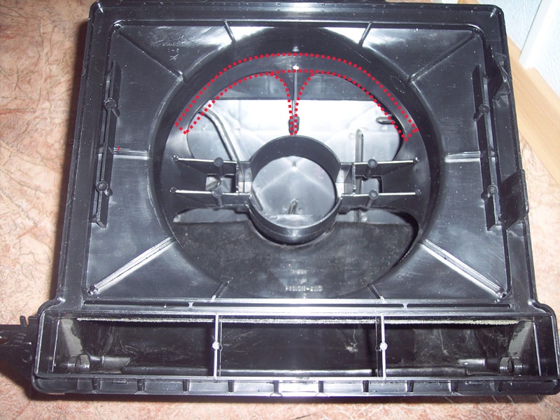 После всех проделанных действий нижнюю часть одеваем на среднюю, предварительно удалить диффузор. Размеры нужно подогнать таким образом, чтобы улитка точно входила в корпус и не выступала за крепления радиатора, расположенные на средней части.