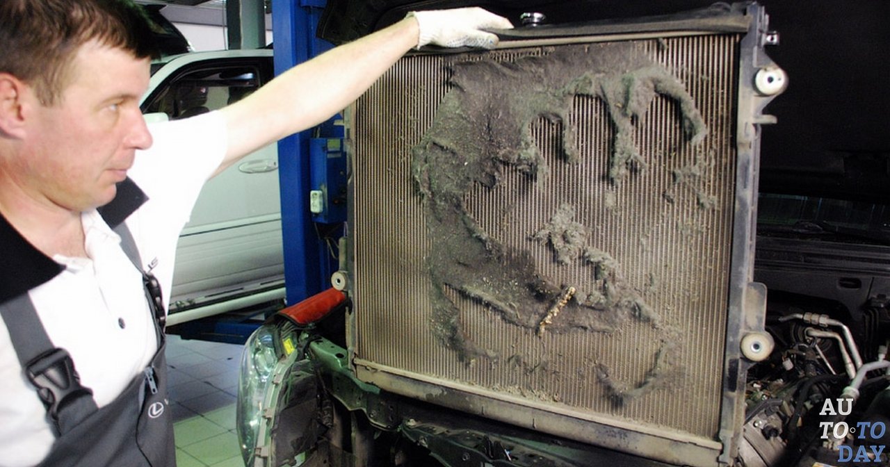 На работу системы охлаждения влияет не только внутреннее загрязнение системы охлаждения, но и внешнее загрязнение. Особенно отвратительно проявляет себя тополиный пух, который забивает соты радиатора так плотно, как будто был специально для этого изобретён. Если внутренняя промывка охлаждающей системы проведена, то следует браться и за внешнюю его обработку от загрязнений.