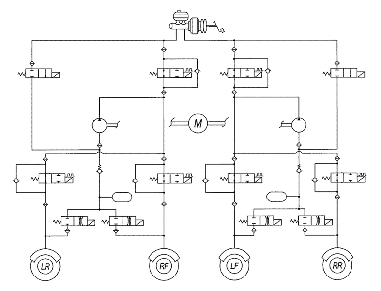 Для выполнения этих функций в состав гидравлического блока АБС включен насос обратной подачи и вспомогательные электромеханические клапаны каждого ведущего колеса.