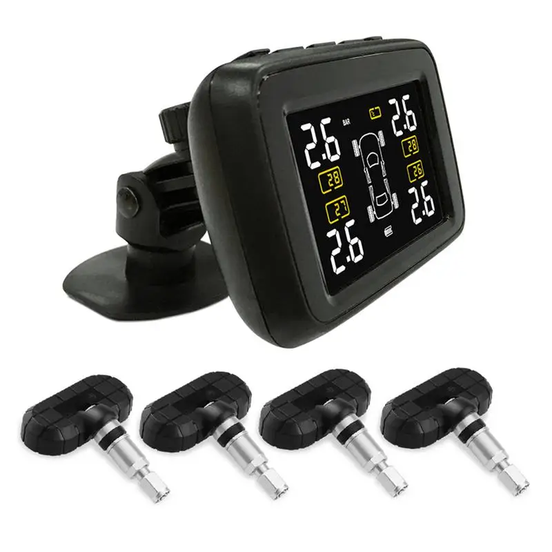 Система контроля давления в шинах TPMS M8Система контроля давления в шинах TPMS M8. Фото: yandex.market.ruЧетыре датчика для измерения температуры/давления с передачей данных на панель с дисплеем обеспечивают необходимый мониторинг в течение 5 лет. В панель встроено аварийное звуковое оповещение, в случае изменения состояния шин. Питание панели доступно от встроенной солнечной батареи или от USB. Вся информация отображается на большом цветном LCD-дисплее с диагональю 7,2 см. Измеряемый уровень давления находится в диапазоне до 4 бар.