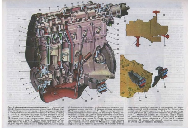 От силового агрегата отсоединяются КПП, водяные патрубки, трубки подачи топлива, а также электропроводка, приводы карбюратора, сцепления и другое.